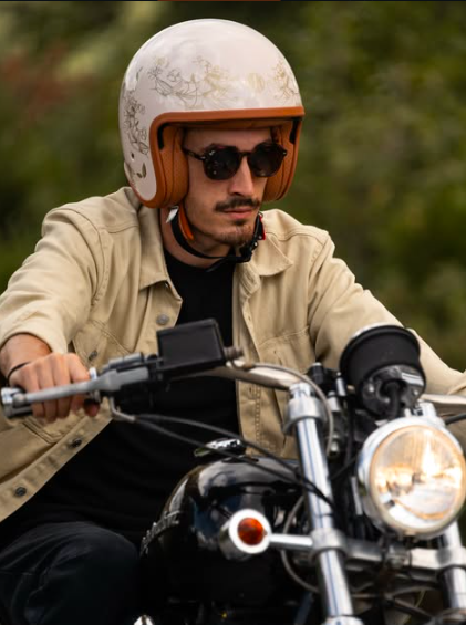 Casco abierto de la marca italiana Origine, modelo Spirit Stoic. Posee una estética custom y vintage, con visor transparente largo y calota de acabado brillo.