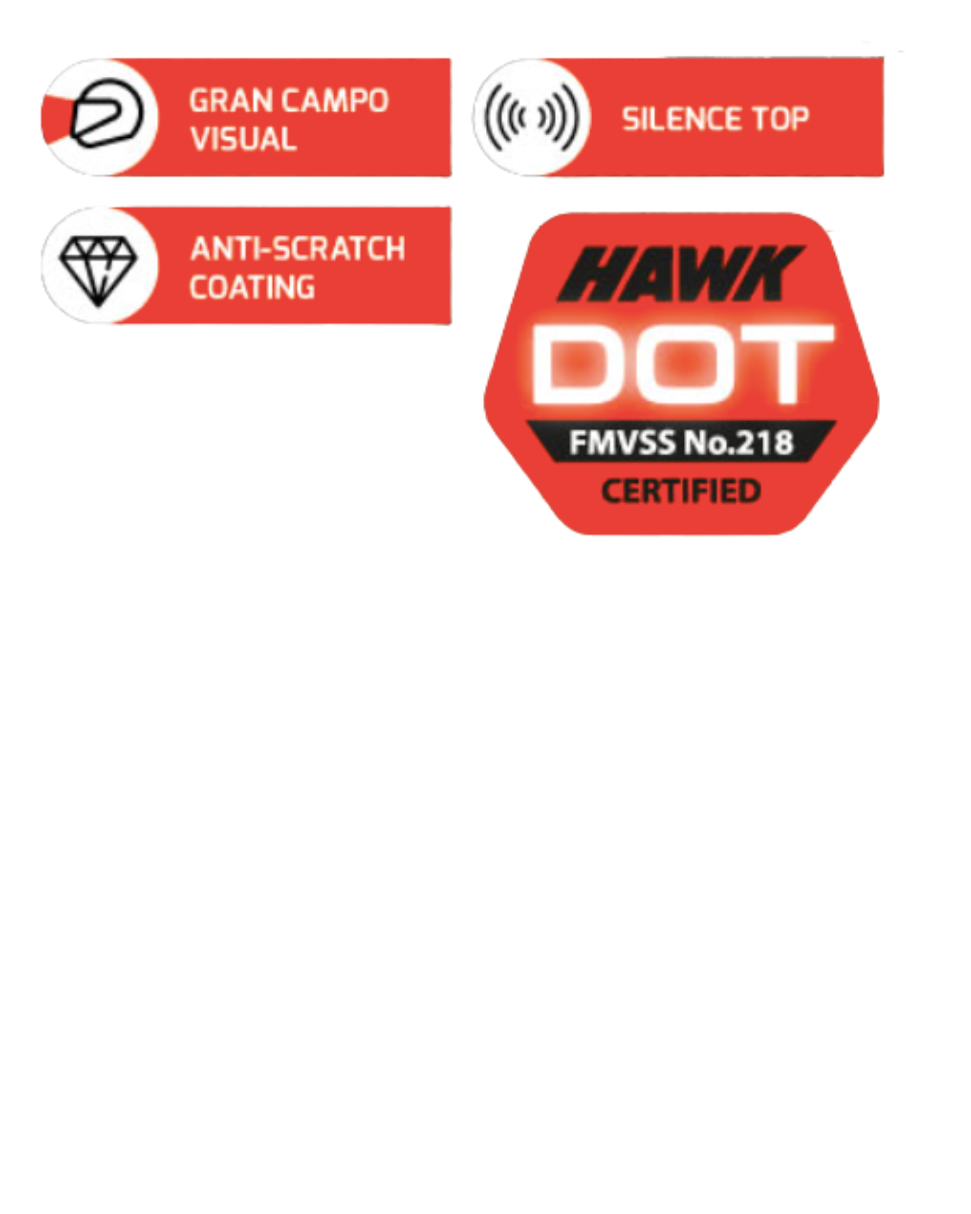 Certificación DOT (Departamento de Transporte de EE.UU.) lo cual certifica que estos cascos cumplen con la norma FMVSS 218, avalando la protección ante impactos, penetración y resistencia del sistema de retención. Esta norma es obligatoria en EE.UU. y una referencia internacional de seguridad.